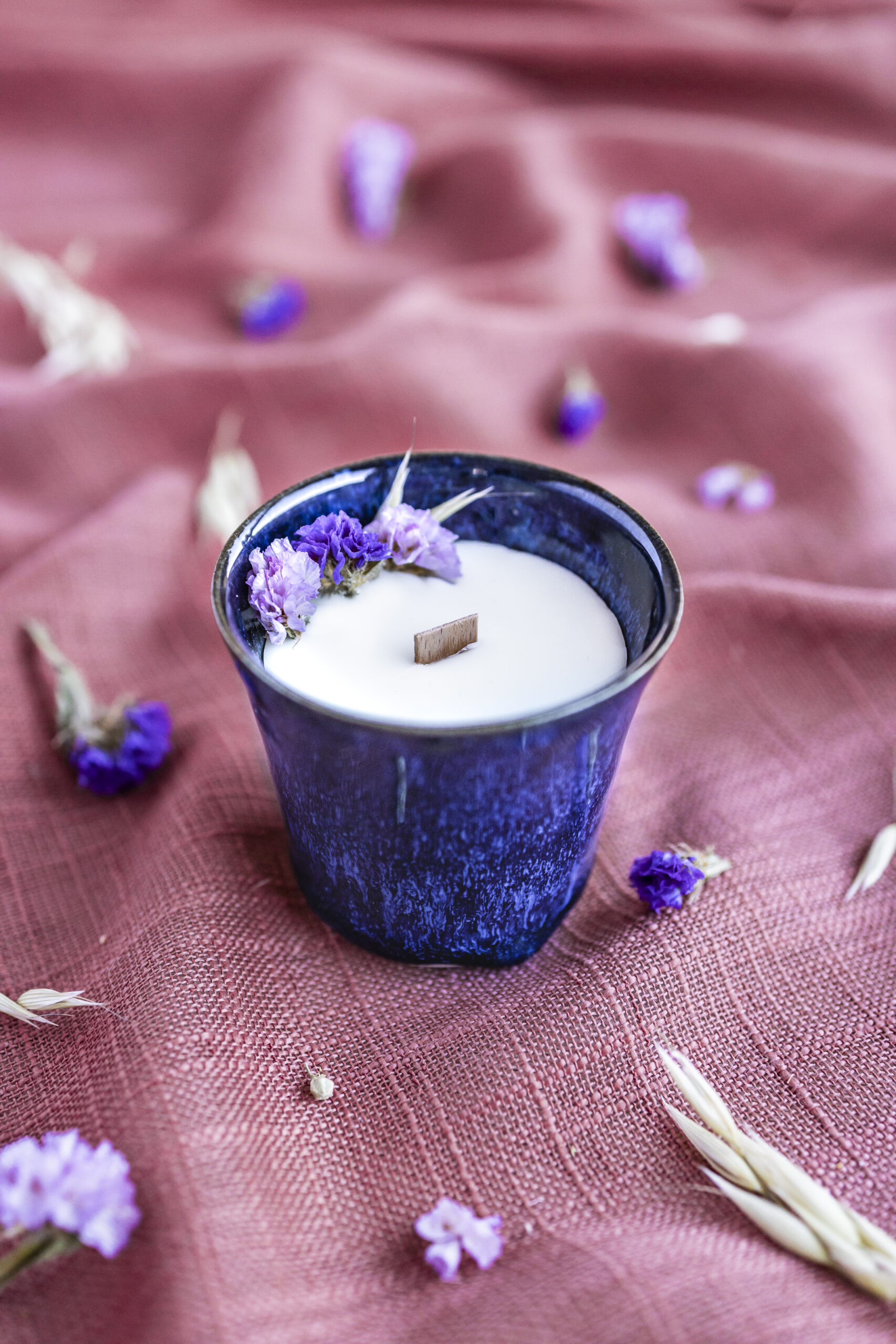 Notre bougie est façonnée et coulée à la main, nos contenants peuvent avoir des légères variations de couleur et forme. La cire peut également présenter des traces de marbrures, légères fissures, ou petites bulles cela n’altère en rien la qualité de la bougie. La décoration florale peut également varier suivant les fleurs disponibles dans nos ateliers.