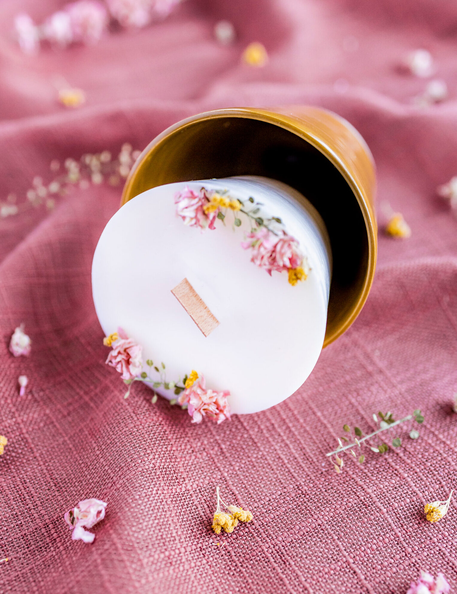 • Au premier allumage, laissez la bougie brûler sur toute la surface afin d’obtenir une ”piscine” pour votre mèche en bois. Cela évitera que votre bougie se creuse autour de votre mèche.